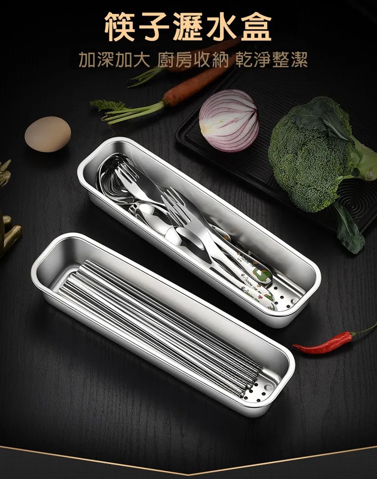 餐具廚房用品304不銹鋼筷子瀝水盒筷籠瀝水盒筷勺刀叉收納盒